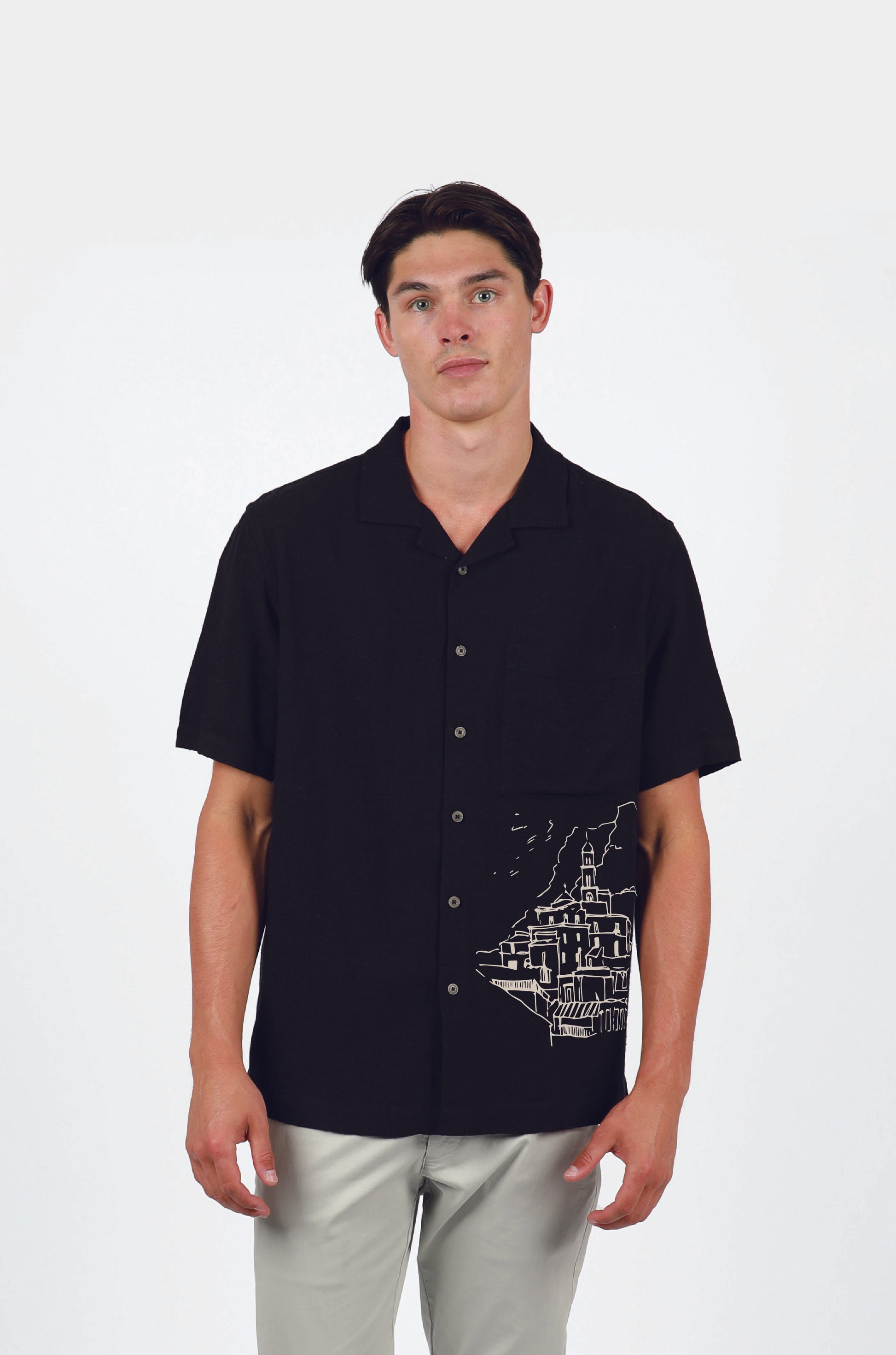 Black Amalfi Cuban Collar Linen Shirt