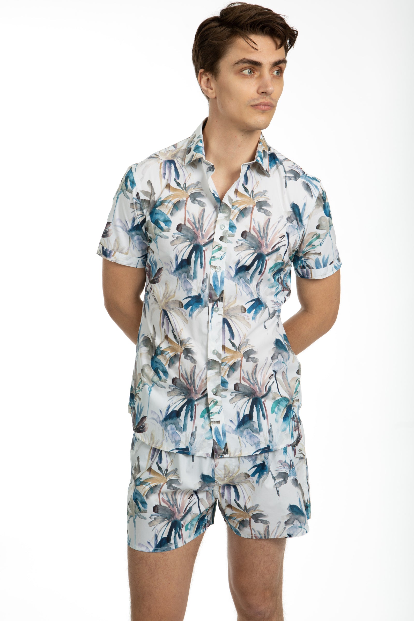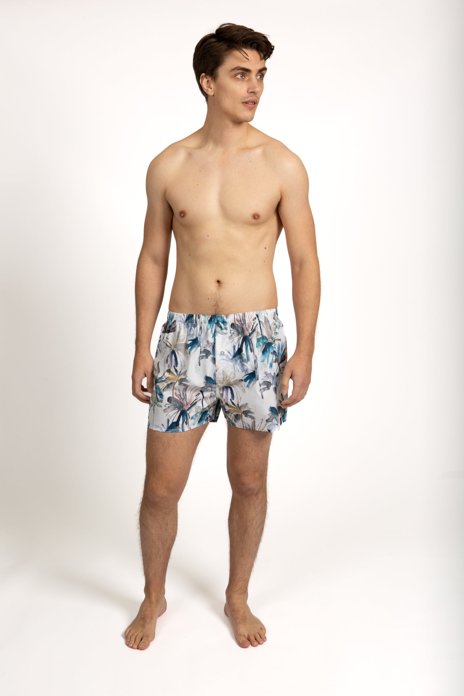 Blue Tropical Poplin Boxer Short With Gift Bag