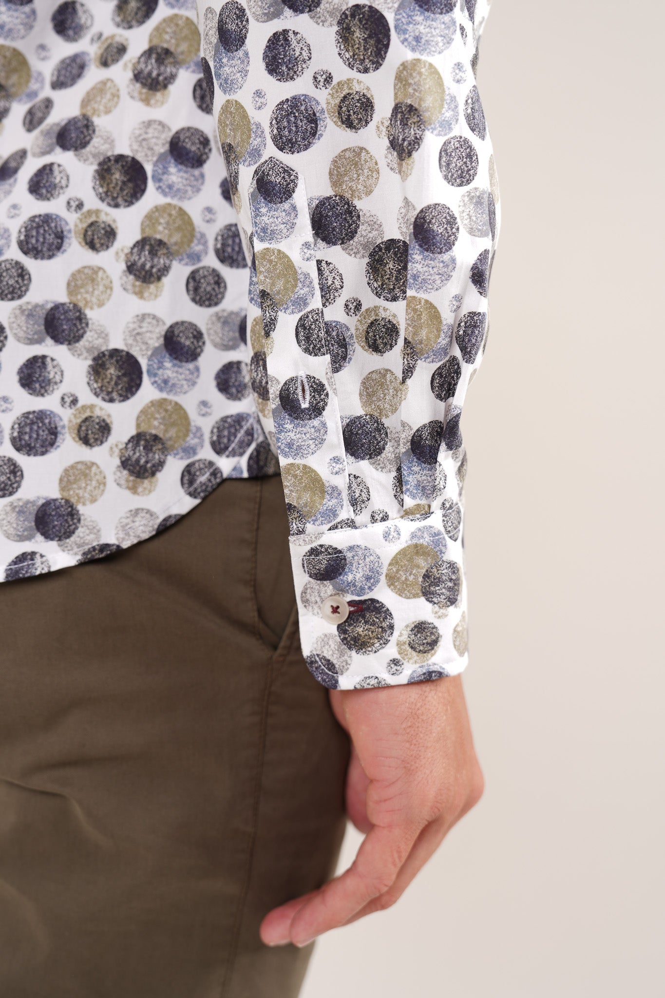 Crafted from a super-soft peach-finish cotton poplin, this fit creates a flattering silhouette.