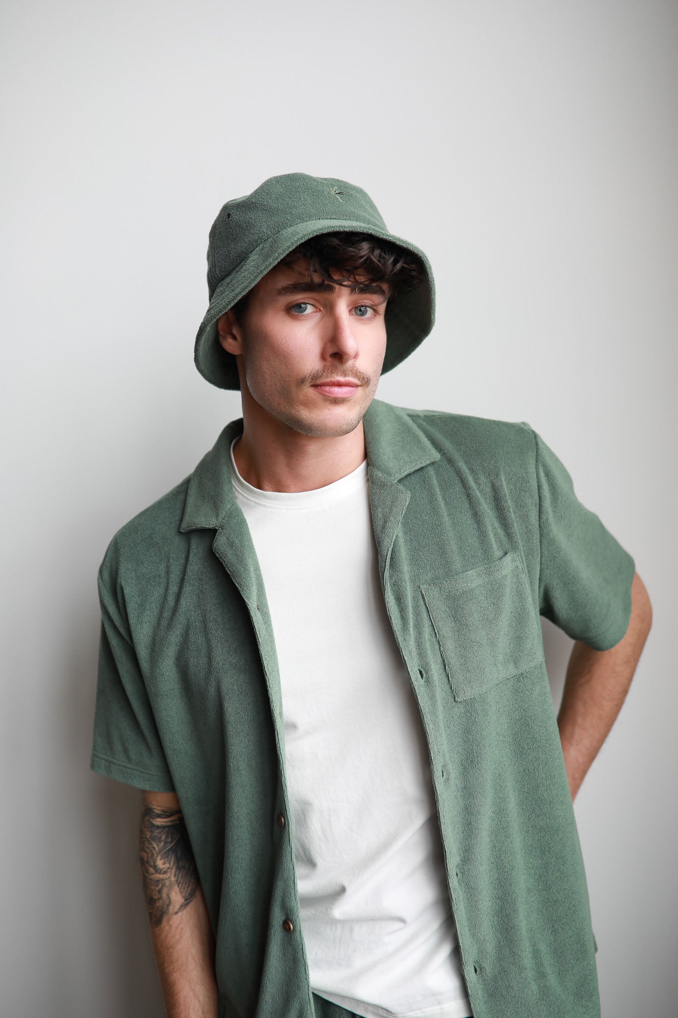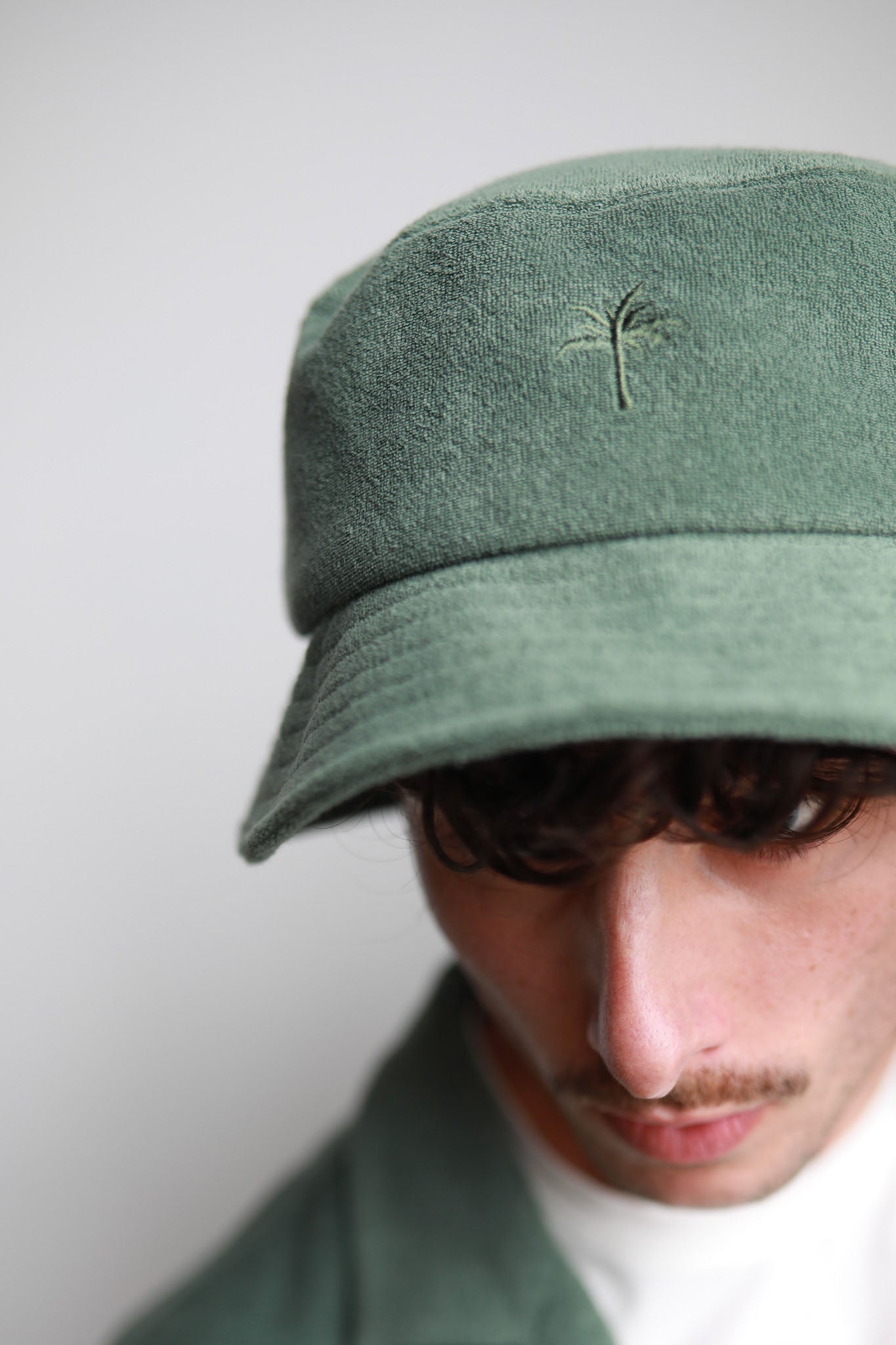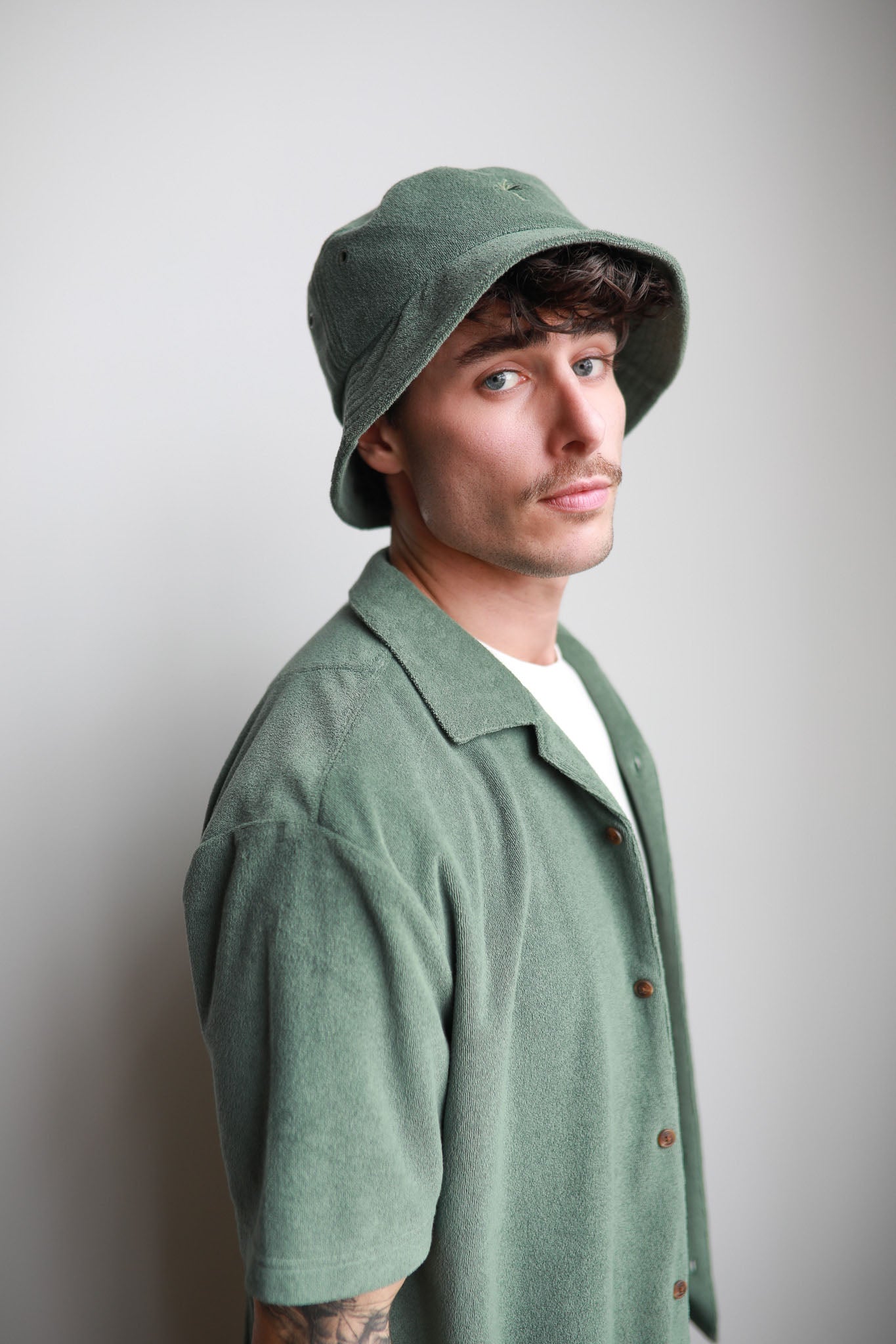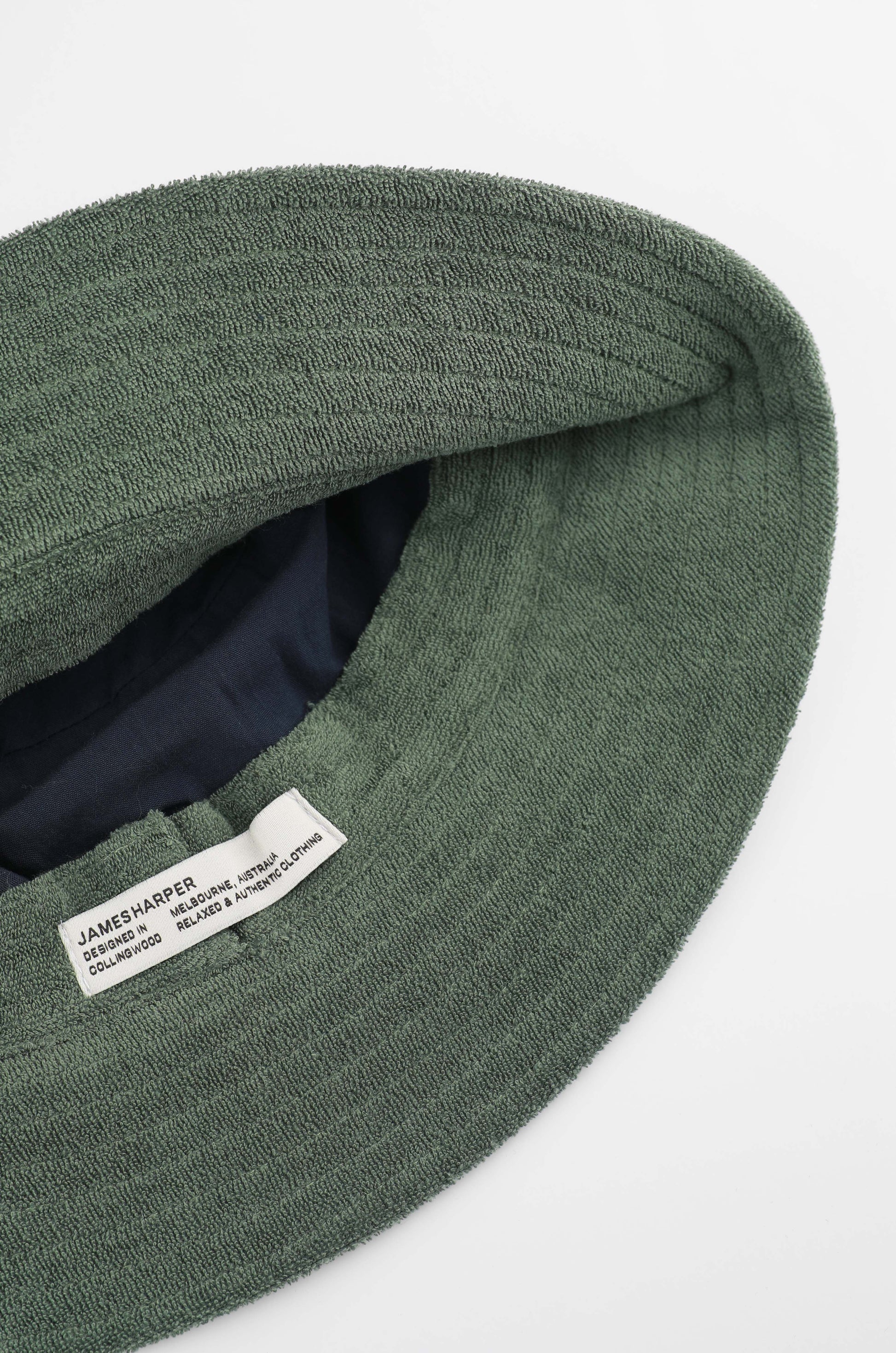 Crafted from soft cotton blend towelling, this bucket hat is the perfect choice for warm weather dressing.