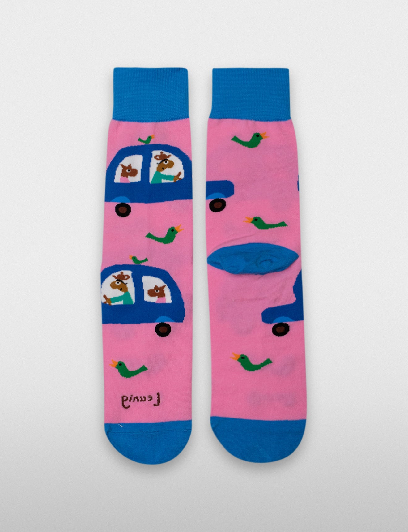 Michael Leunig Cars Pink Socks (Limited Edition)