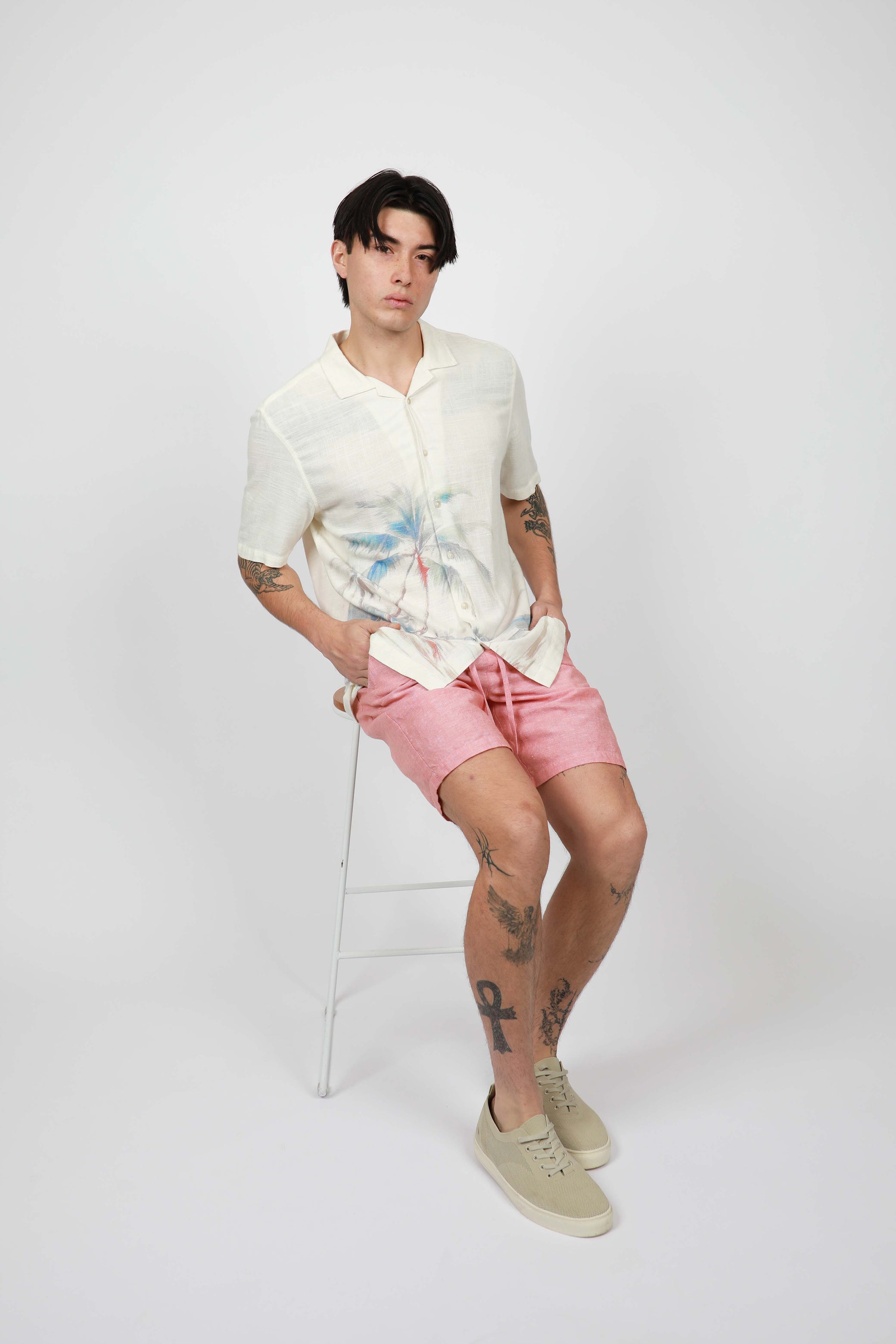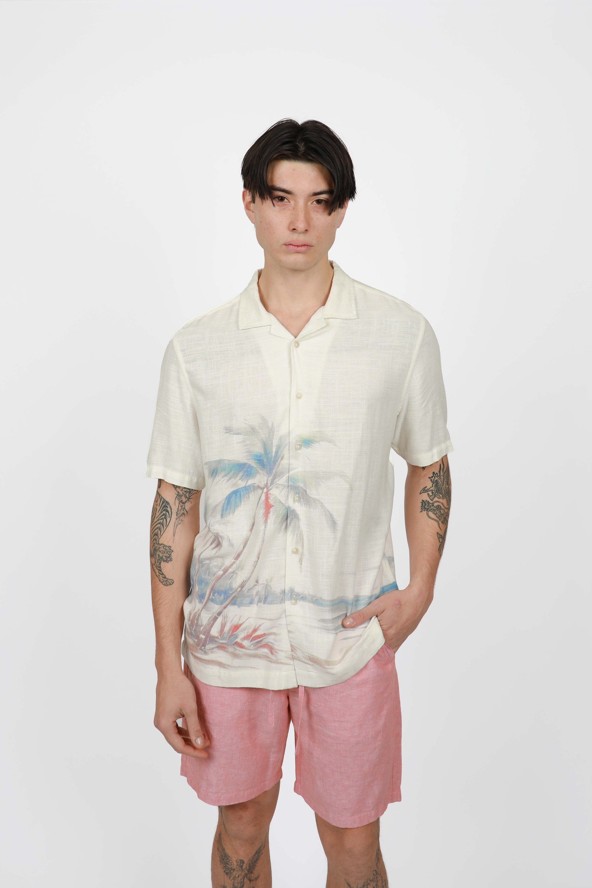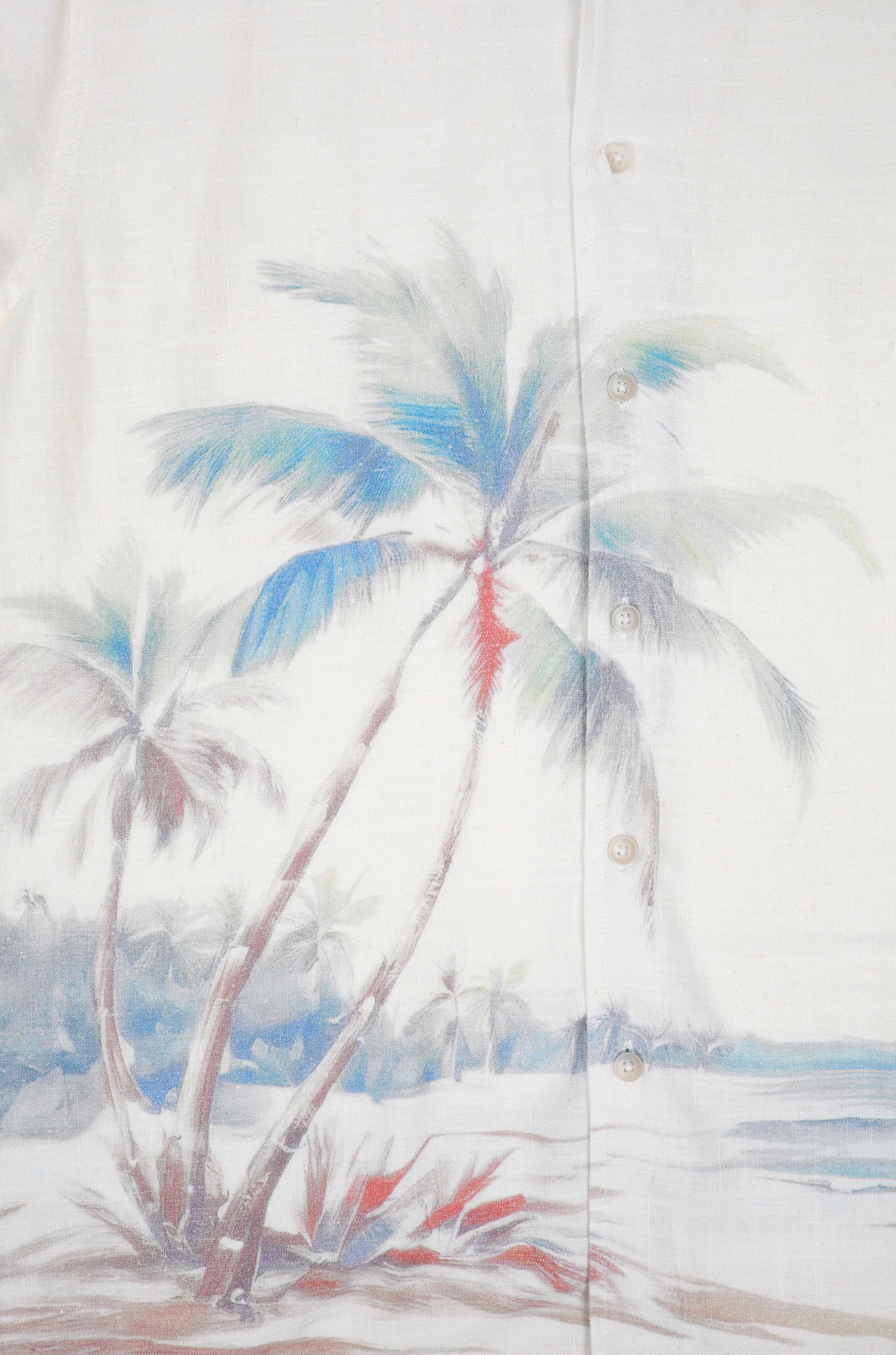 Engineered from breathable linen viscose bend for a soft, luxurious feel, the Hawaiian shirt features a cool Cuban collar for a sharp summer aesthetic. Wear open over a plain tee shirt for a resort-ready feel.