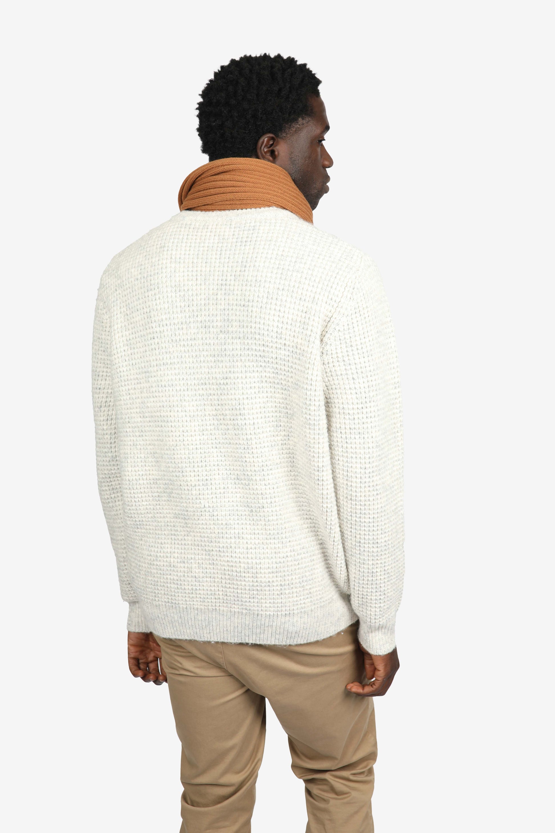 Knitted in blended shades of blue it pairs effortlessly with chinos or joggers.