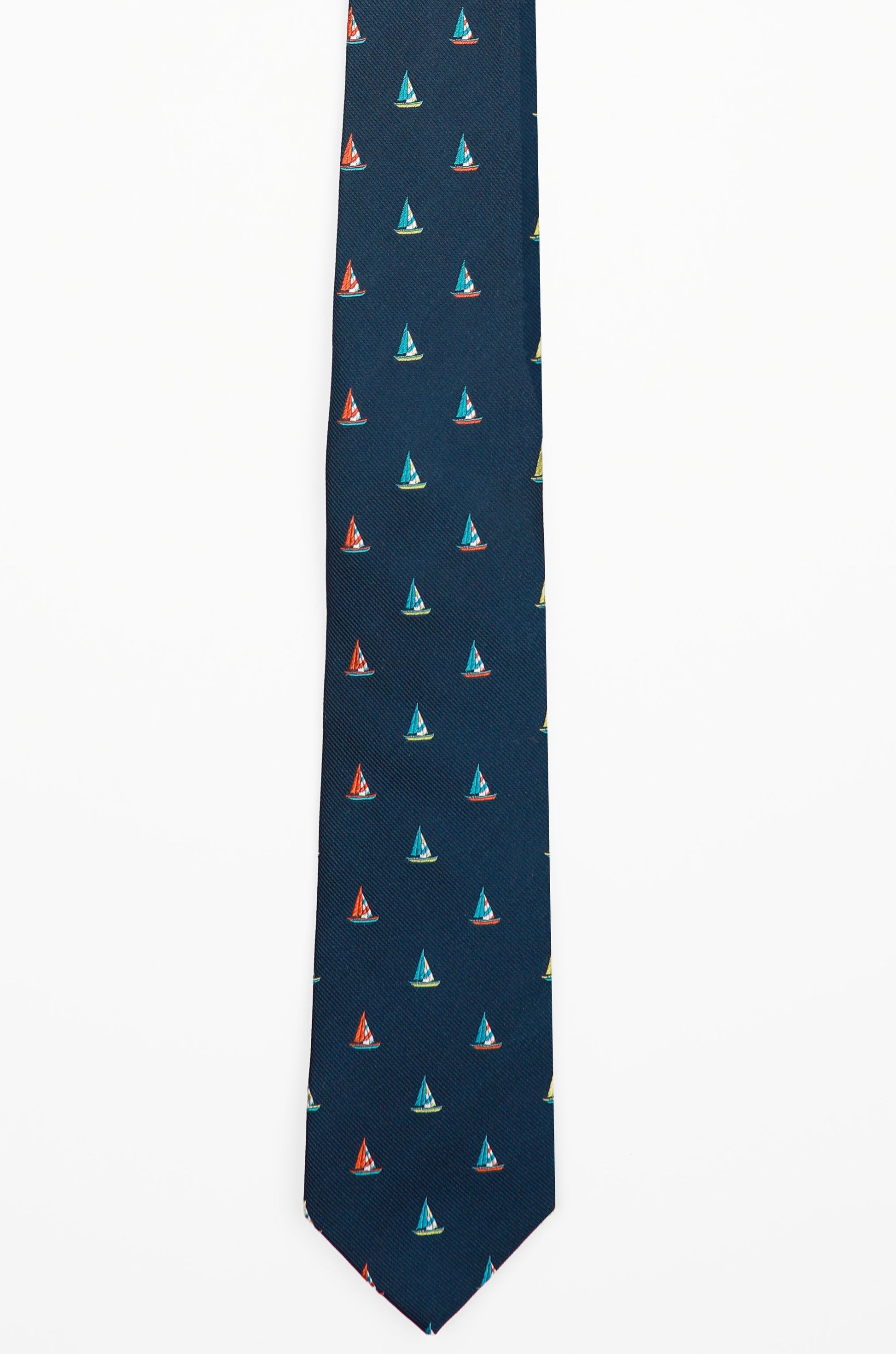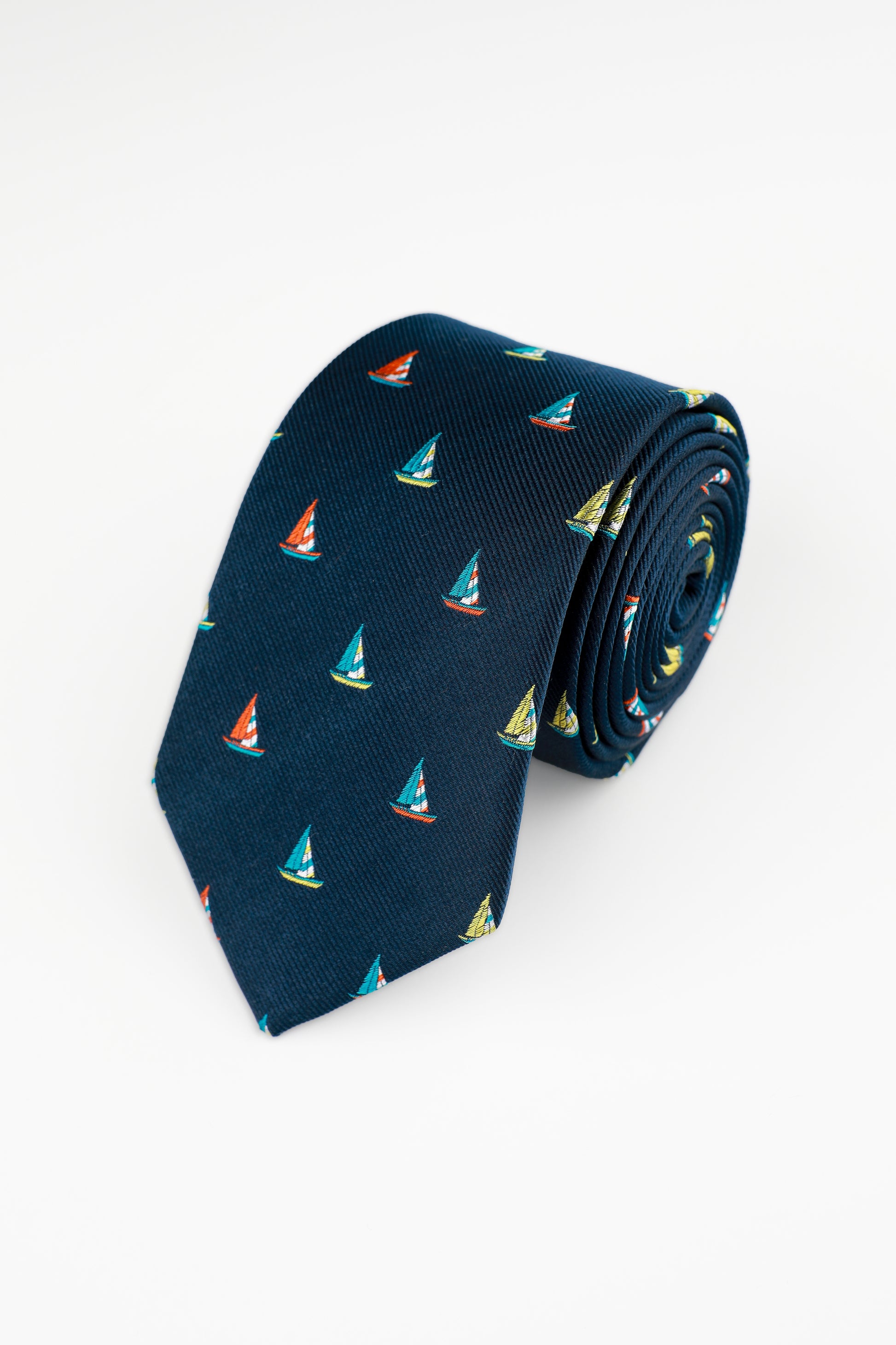 Classic and elegant and crafted from pure silk, this sailboat design is unique James Harper style.