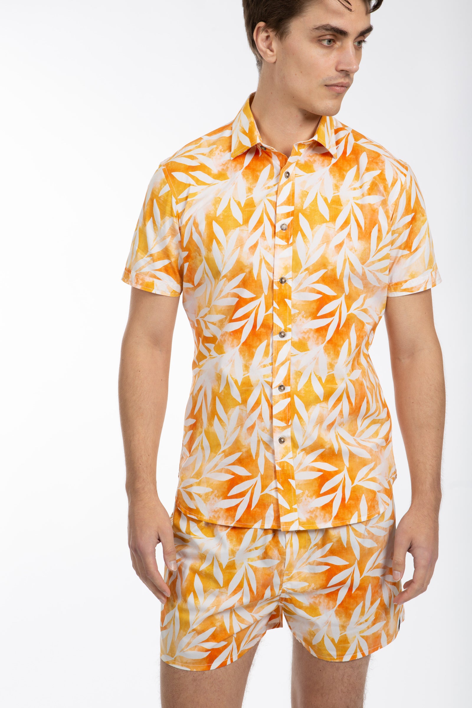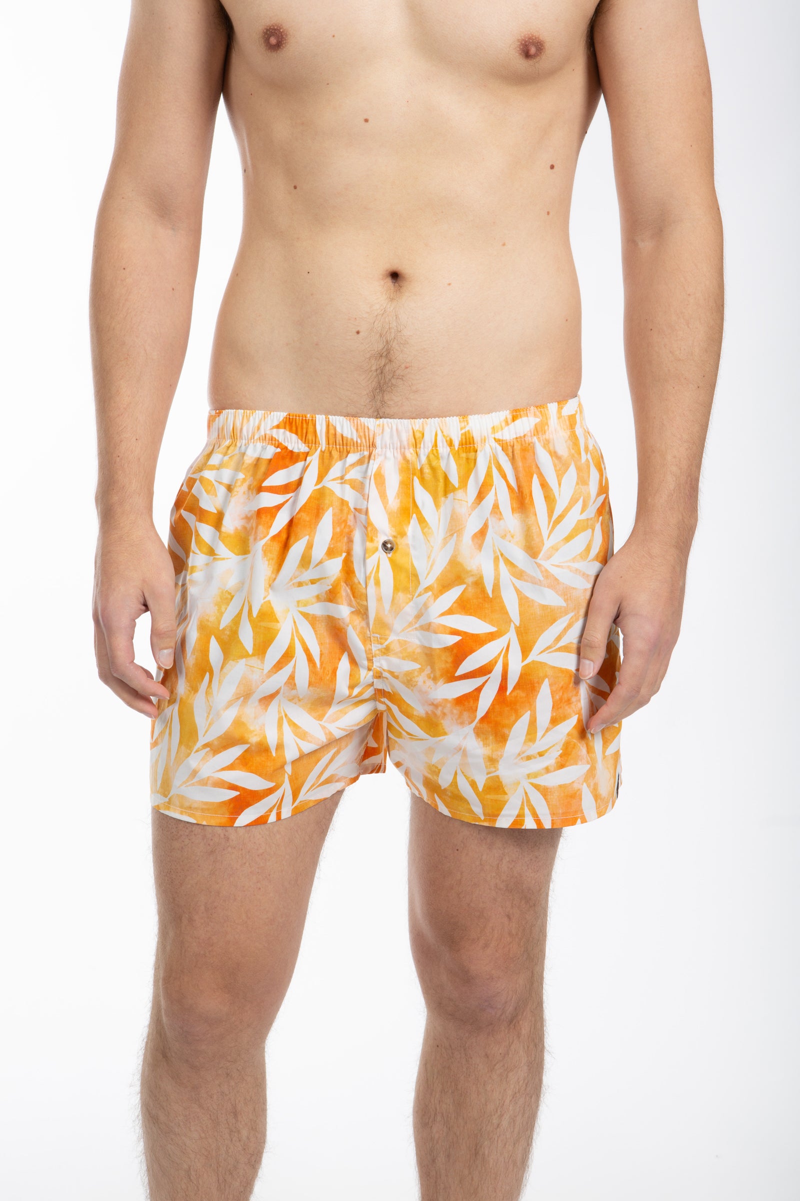 Orange Leaf Poplin Boxer Short With Gift Bag