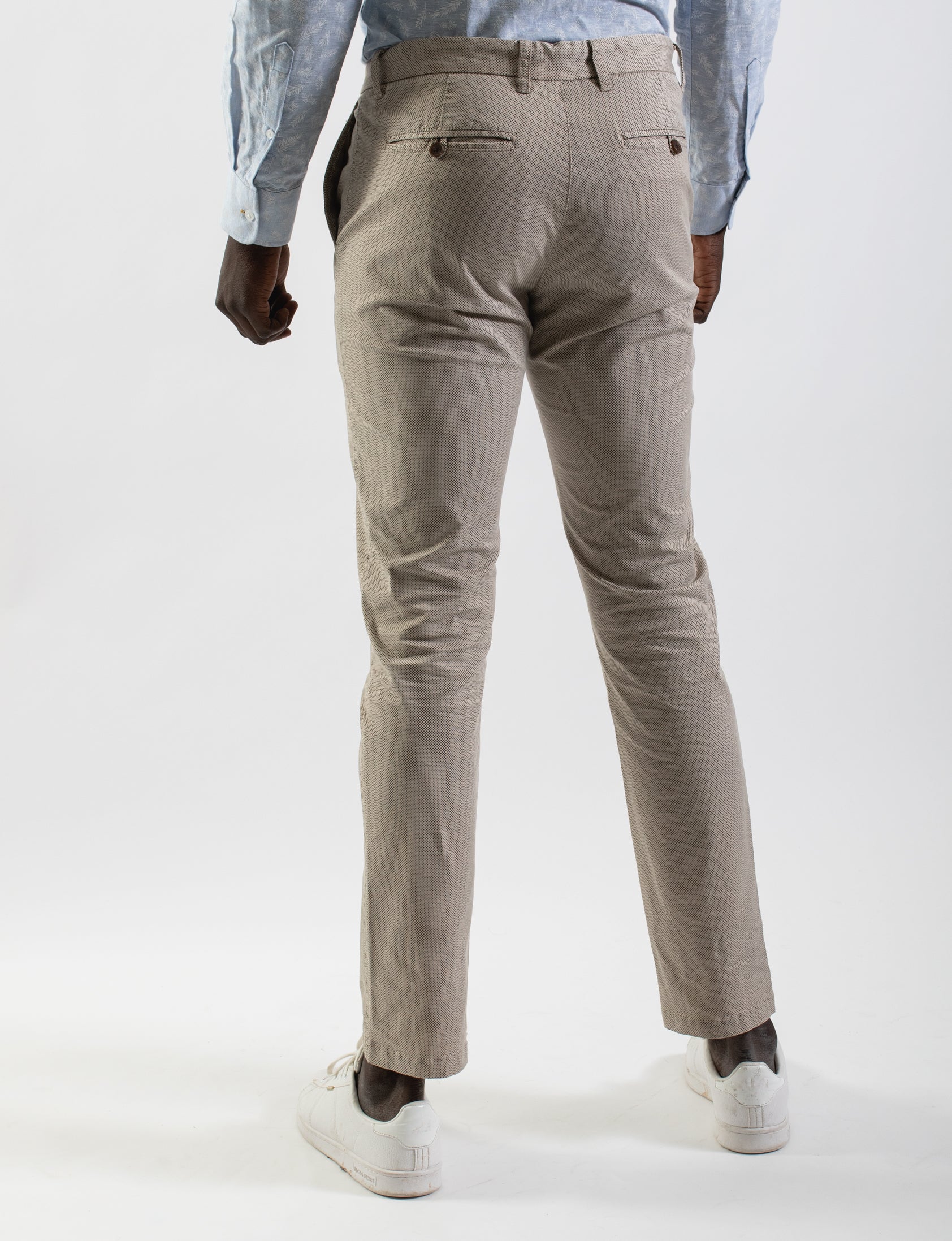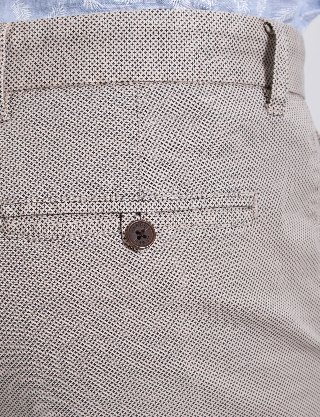 Featuring a subtle geometric print, tailored fit, zip and button fastening and 4 pockets, these stylish chinos have all the contrast hidden details you would expect. They are garment dyed giving the fabric a soft handle and a lived in feel