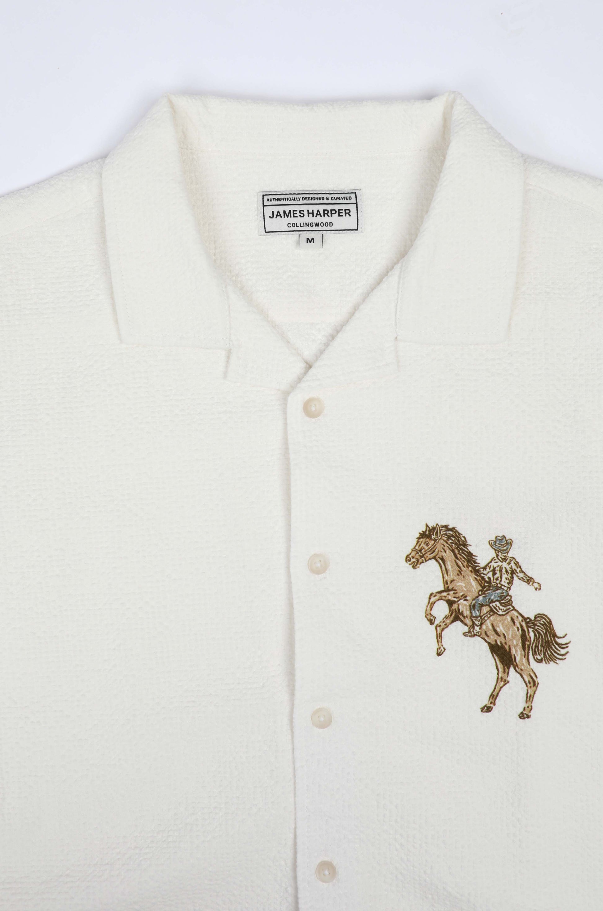 White Rodeo Cuban Collar Linen Shirt